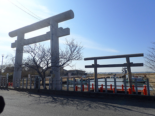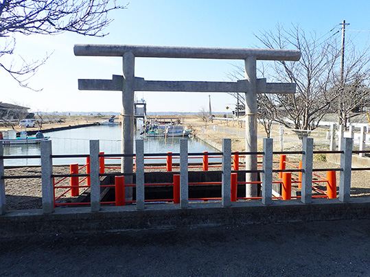 天鳥船神は交通守護の霊格の高い神様で、鹿島大神の御先導をつとめられた神様とされているそうです。このことから神代時代に鹿島、香取の御祭神に従って東国に至り、鹿島、香取両神宮が其々、その台地に鎮座し、久那斗神と天乃鳥船神は海辺の日川(現在の神栖市日川)に姿を留め、やがて応神朝になって神社として祀られたと考えられているそうです。