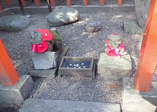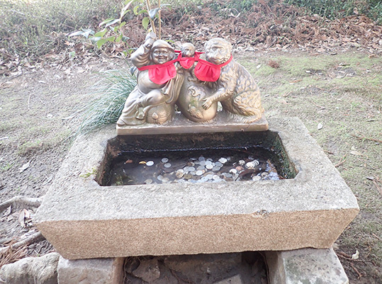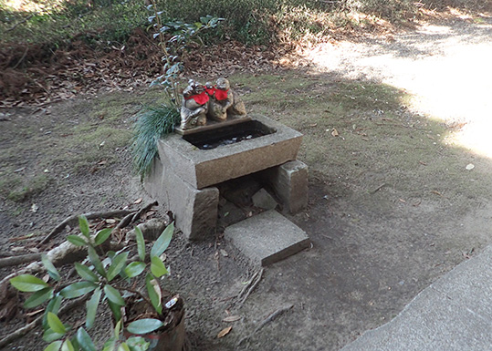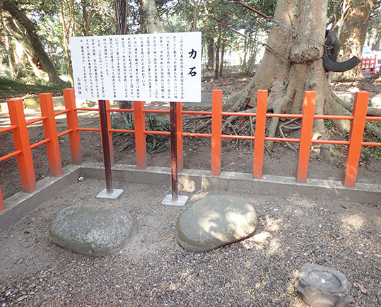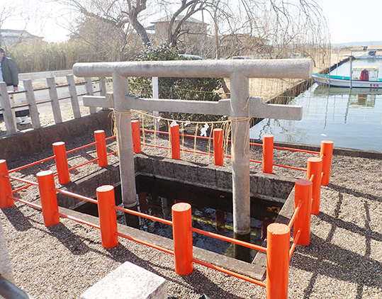 常陸利根川沿いにある一の鳥居の両脇には、小さな鳥居の建てられた2つの四角い井戸「忍潮井(おしおい)」があります。それぞれの井戸の中を覗くと、うっすらと瓶(かめ)が見え、白御影石で銚子の形をしているものは「男瓶(おがめ)」、やや小ぶりで土器の形をしているものは「女瓶(めがめ)」と呼ばれています。