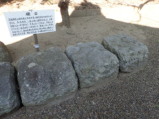 その後、社殿は1704年(宝永3年)、1723年(享保8年)、1848年(弘化4年)と数回に渡って建替えられてきました。しかし、1960年(昭和35年)10月に焼失してしまいました。そのため1963年(昭和38年)5月に新たに社殿が建てられました。境内には1960年(昭和35年)以前の社殿に用いられていた楚石が残されています。