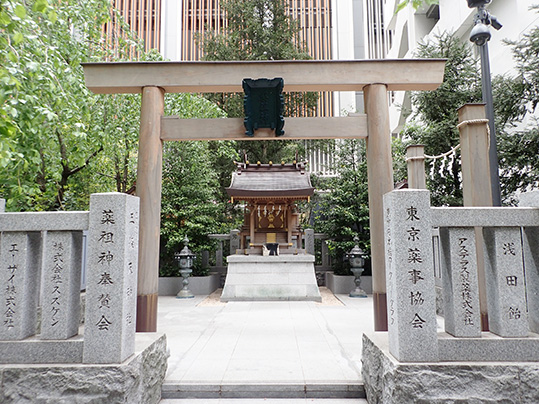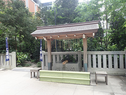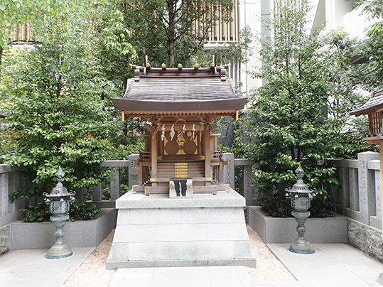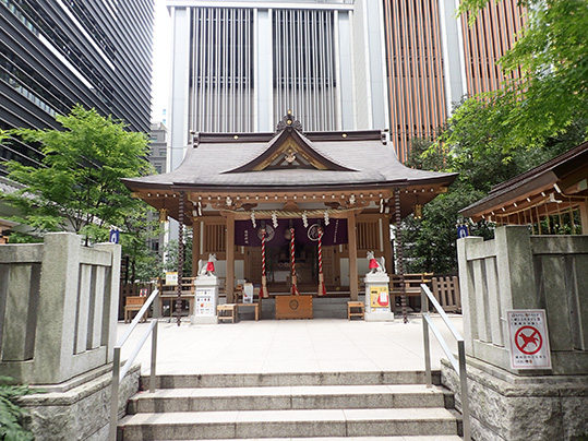 さらに関東大震災後の区画整理によって日本橋区室町2丁目4番地に遷座させられたそうです。さらに1973年(昭和48)年1月には中央区日本橋室町2丁目4番14号に遷座させられたそうです。そして2006年(平成18年)、日本橋室町の再開発による建て替えに伴って遷座させられ、2014年(平成26年)に現在の新社殿が竣工し、現在地に遷座したそうです。ビルの谷間にありながら、緑もあって落ち着ける空間になっています。