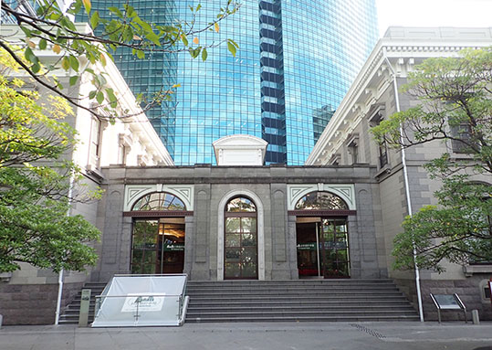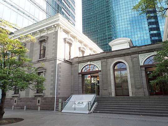 そして、開業当時と同じ場所に開業当初の駅舎の外観やプラットフォームの石積の一部が再現され、2003年(平成15年)から「旧新橋停車場」として公開されています。アメリカ人のリチャード・ブリジェンス(Richard Perkins Bridgens)の設計による木造石張り2階建ての西洋建築の駅舎の外観を再現することに重点を置きながらも、現在の建築基準法に則って造られています。駅舎の外観に使用された材料は、当時の文献や錦絵などを参考にしながら、現在入手可能で、かつ建材に用いられているものから選定したそうです。内部は防災対策やバリアフリーなど、建物の性能を重視して現代的なデザインが施されています。