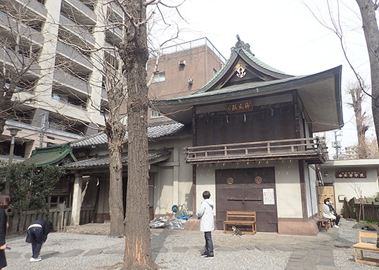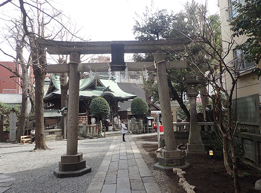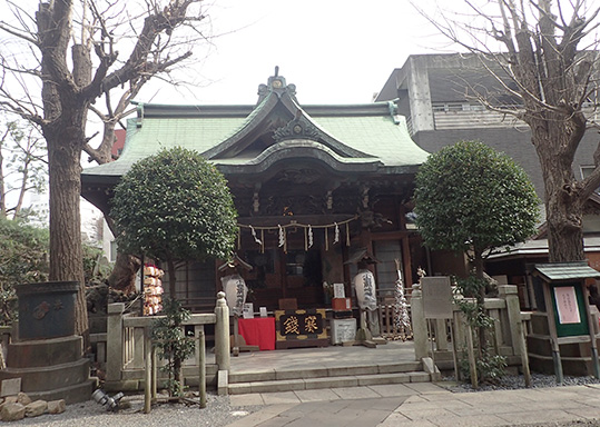 本殿は江戸末期、幕末の1866年(慶応2年)に建造されました。江戸では珍しく関東大震災、東京大空襲という2度の大火を免れ、軒下には鳳凰や龍、獅子、象などの見事な彫刻も残されています。