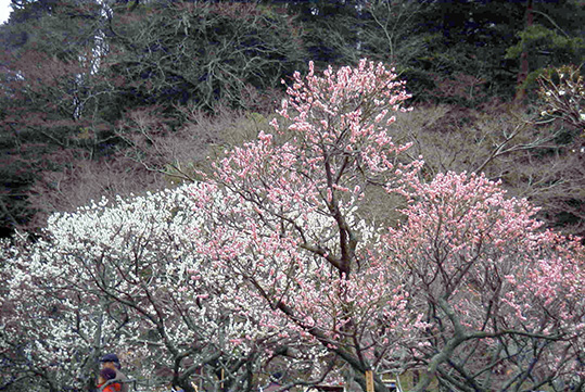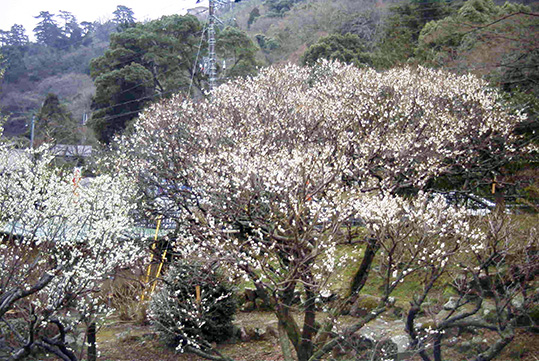 毎年11月中旬〜12月上旬に第一号の梅の花が開き、「日本一早咲きの梅」のある梅園として知られています。44,000平方メートルの敷地には樹齢100年を越える梅の古木を含め、60品種、469本の梅が咲き誇ります。早咲き、中咲き、遅咲き、と順番に開花していくため、長期間に渡って梅を楽しむことができます。