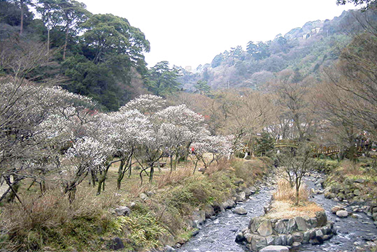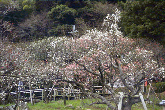 「熱海梅園(あたみばいえん)」は静岡県熱海市のJR、熱海駅から西へ2kmくらいの丹那トンネル熱海口近くのゆるやかな山間にある梅園です。1886年(明治19年)に横浜の豪商、茂木惣兵衛の出資によって造られました。