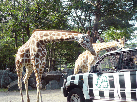 「富士サファリパーク」は1980年(昭和55年)に開園された富士山の麓、静岡県裾野市にあるサファリ形式の動物園です。面積、生息動物数ともに日本最大級のサファリパークです。大自然の中で60種、約900頭の動物たちがのびのびと暮らしている姿を見学できます。