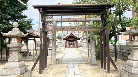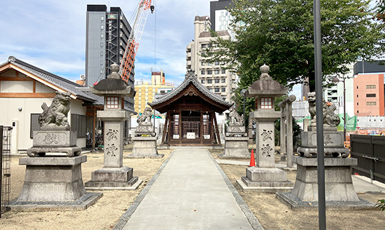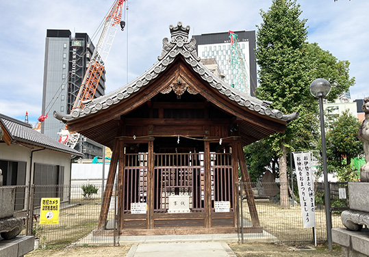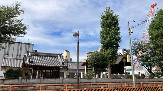 伊勢神宮に似た高床式の「神明造り」の本殿を構え、約1500平方メートルの境内を誇っていましたが、JR東海が建設を進めているリニア中央新幹線の新駅の工事のため、境内の北側一部が用地買収の対象になりました。このため本殿を南に数メートル移動させ、残る境内で存続する形になりました。工事は2020年4月から2022年3月とのことです。