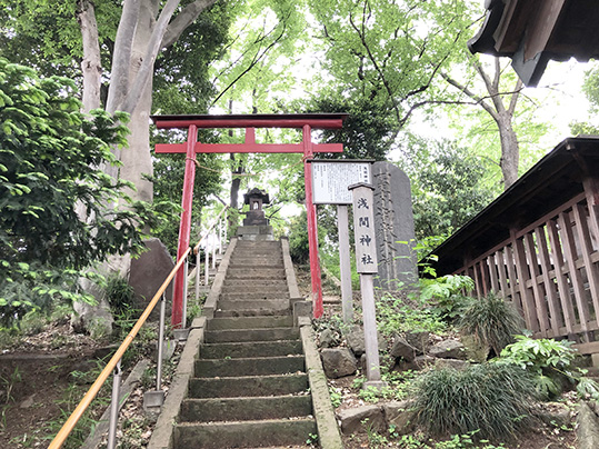 また境内の奥、高さ約5mの塚の上に浅間神社があります。創建時期は不明だそうですが、江戸時代後期に広まった富士浅間信仰の影響で勧請されたのではないかと考えられているそうです。